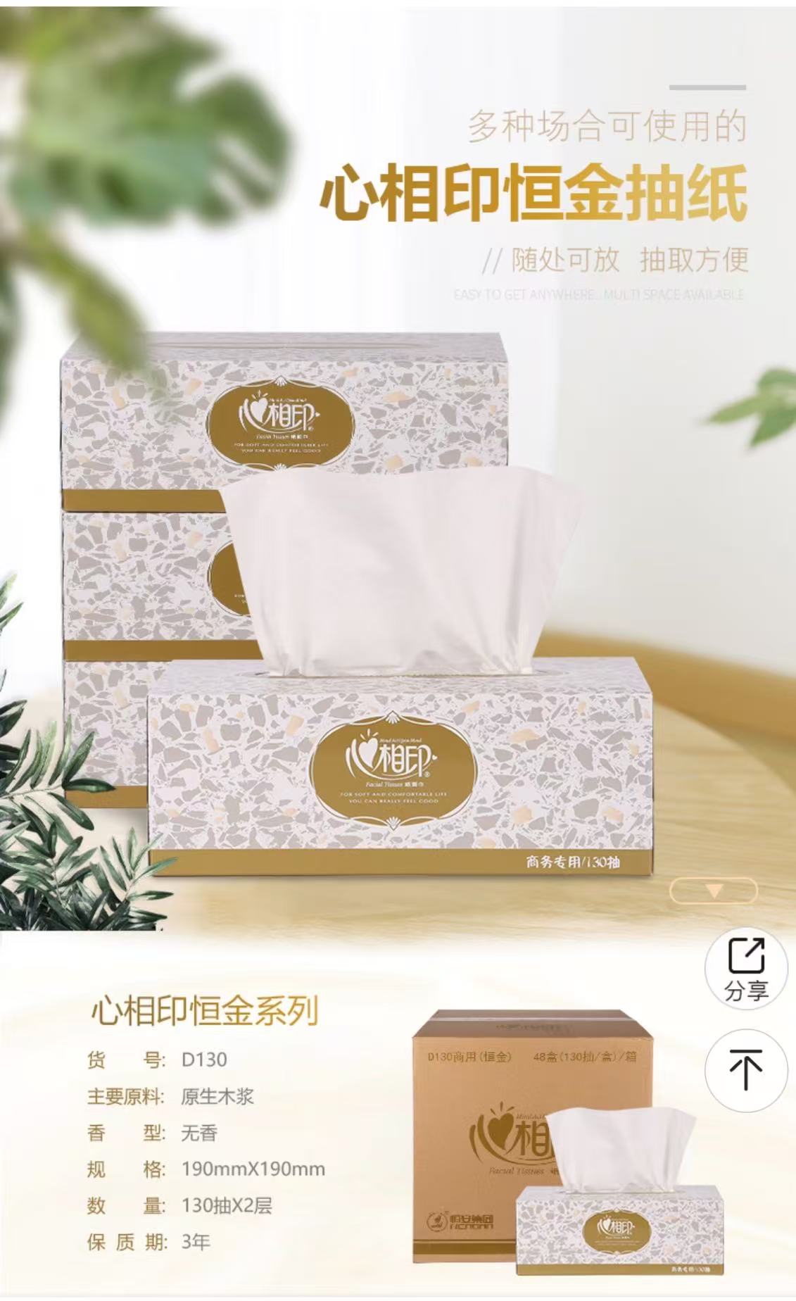 心相印/MindActUponMind D130 盒装抽取式面纸 双层面巾纸 硬盒抽纸130抽/盒3盒每提商务餐巾 自营