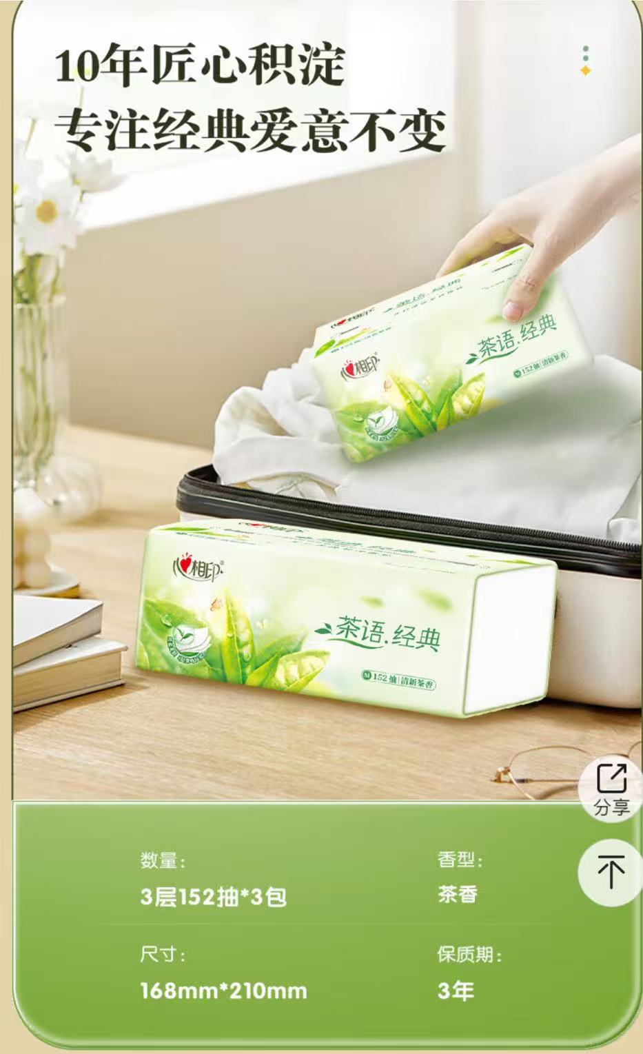心相印/MindActUponMind DT3200 软包抽取式面纸茶语经典加大加厚 自营