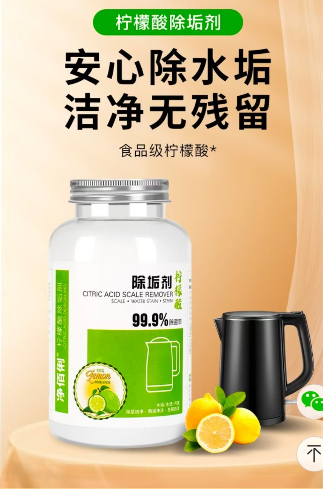 净佰俐/JINGBL 多用途清洁剂 柠檬酸除垢剂500g水垢、水渍、污渍、免刷自洁 自营