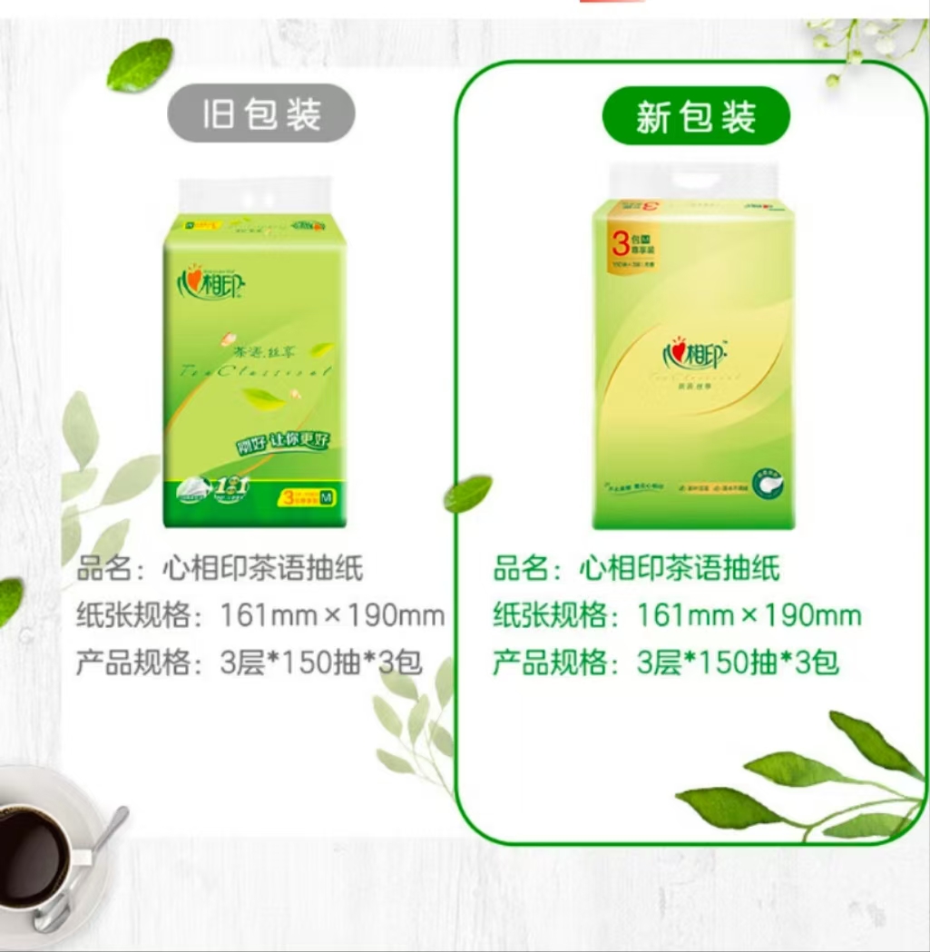 心相印/MindActUponMind DT32150 软包抽取式面纸软包抽取式面纸 (提装)茶语丝享系列150抽 抽纸3包/提 自营