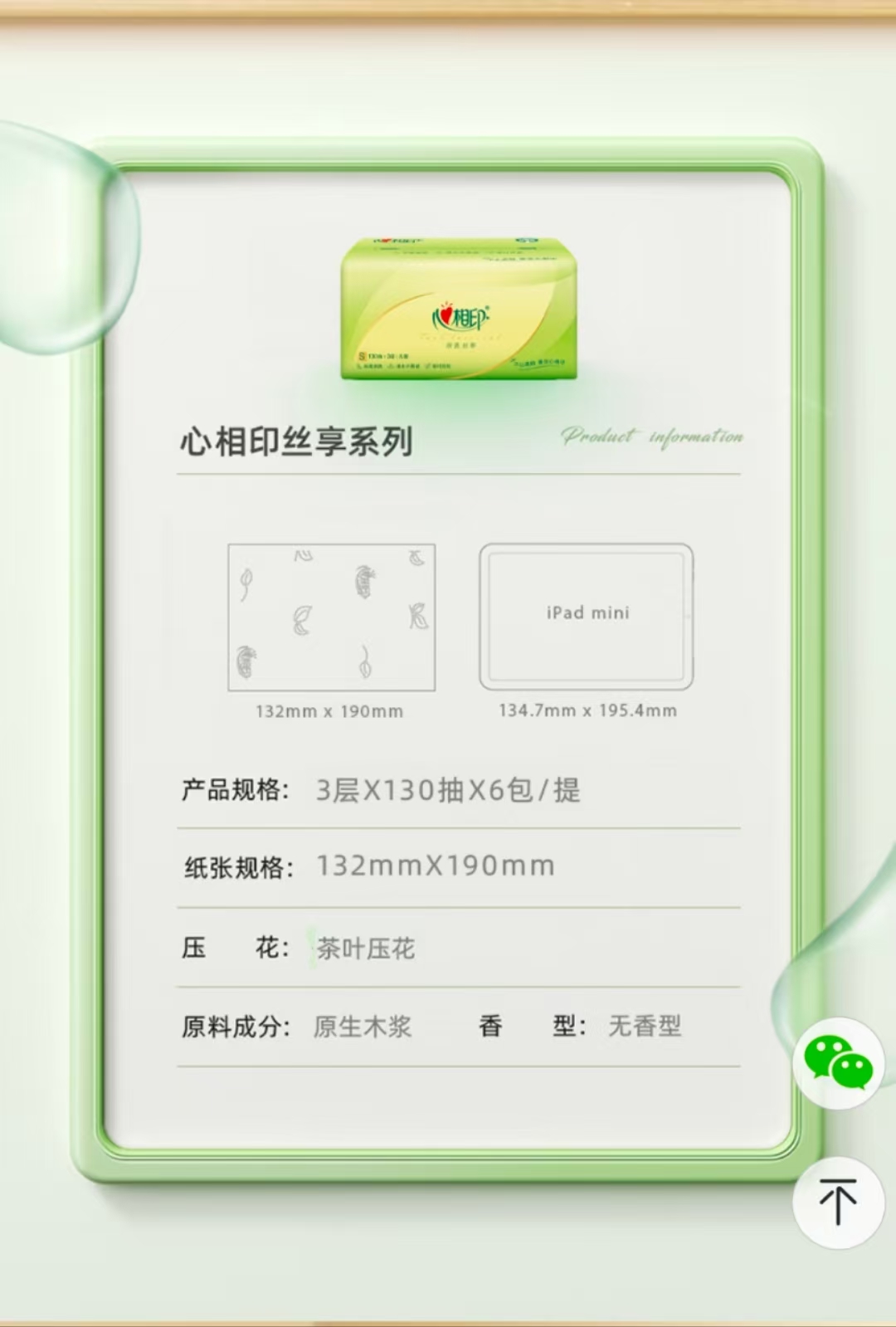 心相印/MindActUponMind DT15130 软包抽取式面纸 130抽6包一提无香原生木浆 DT15130 自营