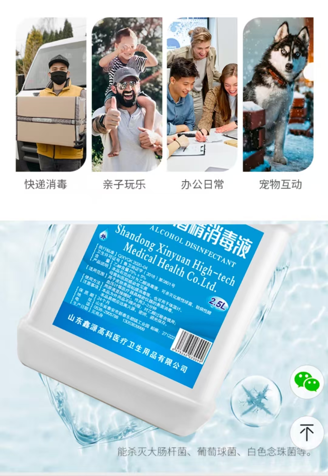 五岳 2.5L 多用途清洁剂 75%酒精消毒液可杀灭肠道致病菌 自营