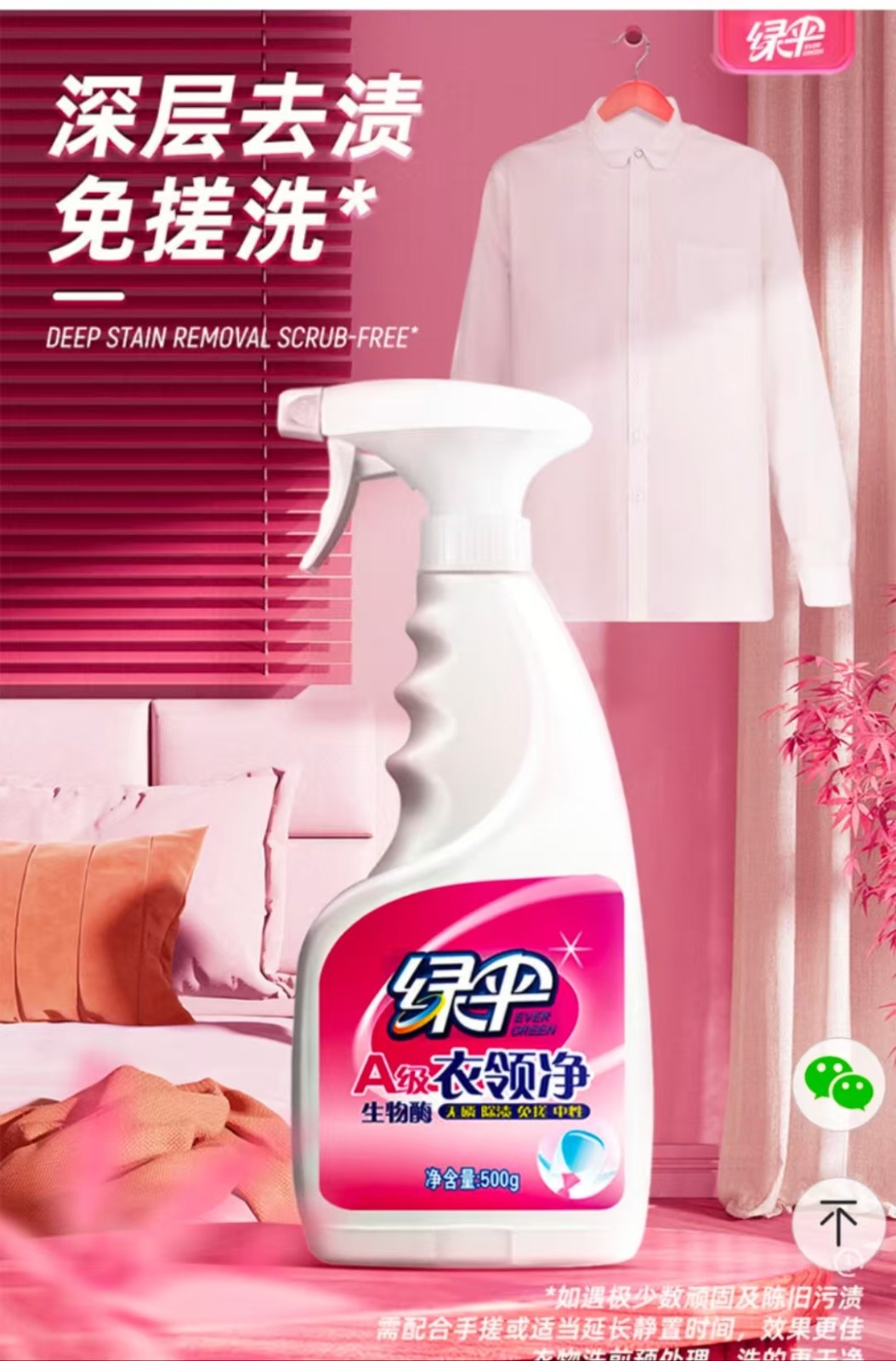 绿伞 500g*2瓶 多用途清洁剂 A级衣领净 生物酶无磷除渍免搓 中性 自营