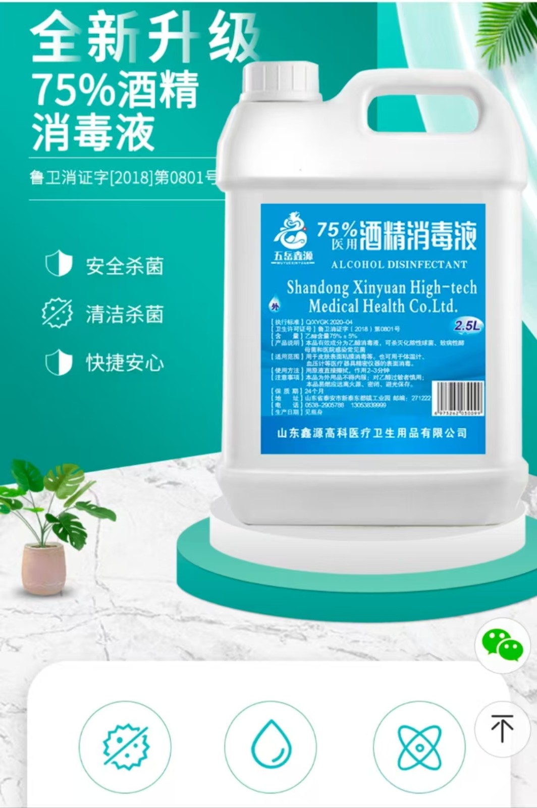 五岳 2.5L 多用途清洁剂 75%酒精消毒液可杀灭肠道致病菌 自营