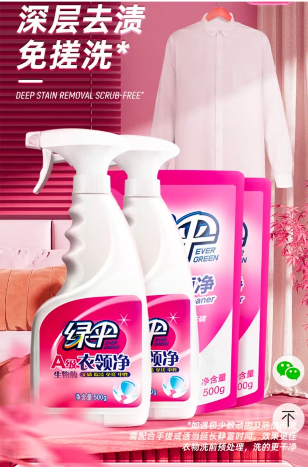 绿伞 500g*2瓶 多用途清洁剂 A级衣领净 生物酶无磷除渍免搓 中性 自营